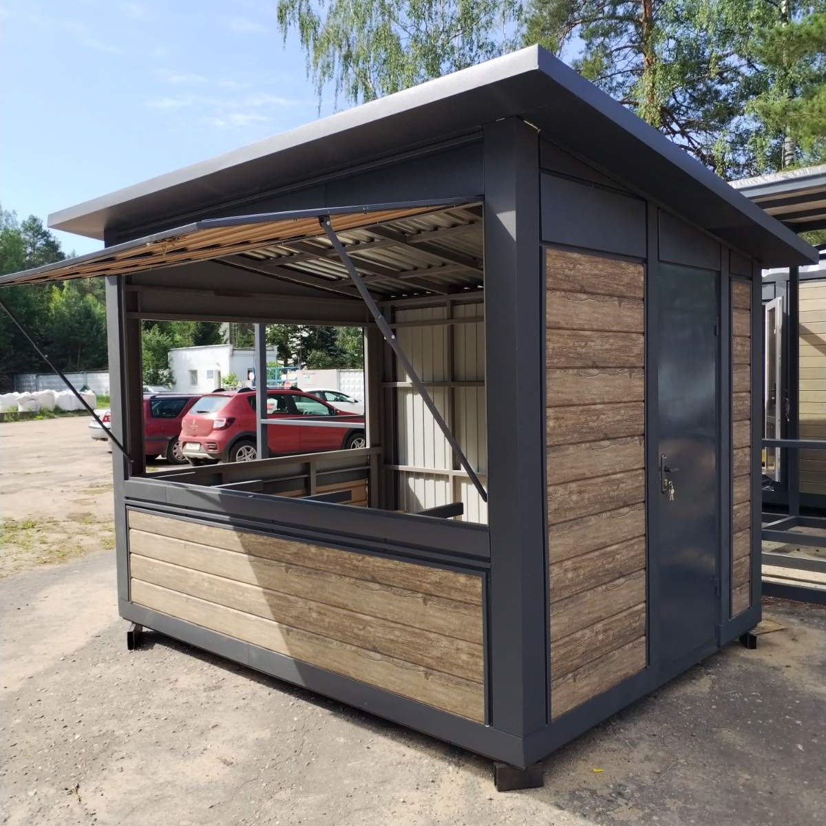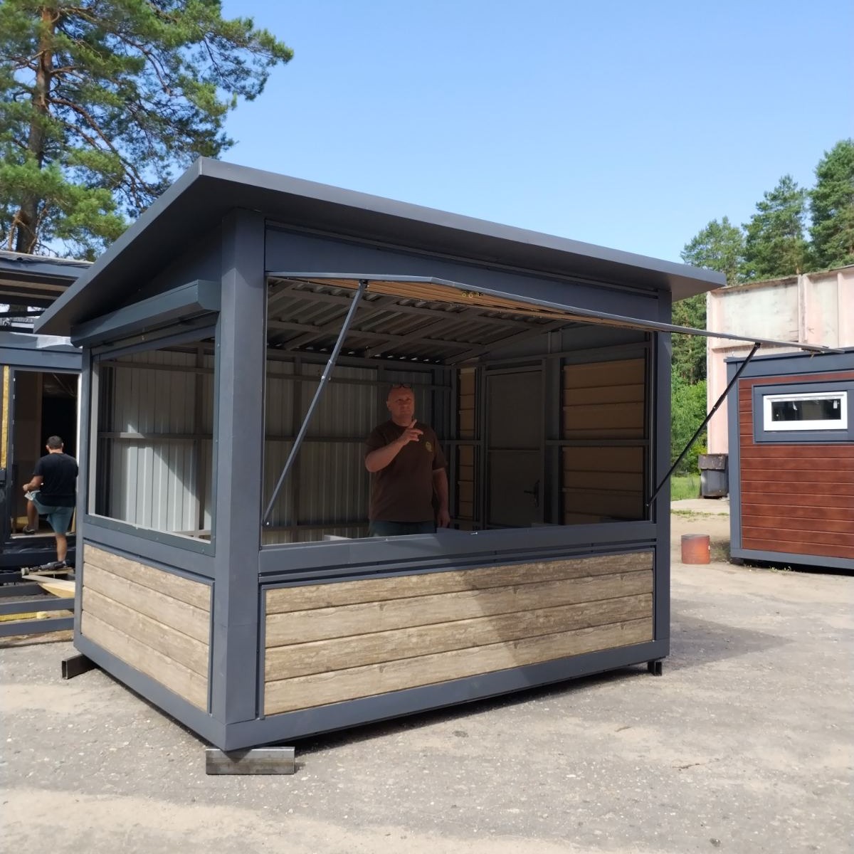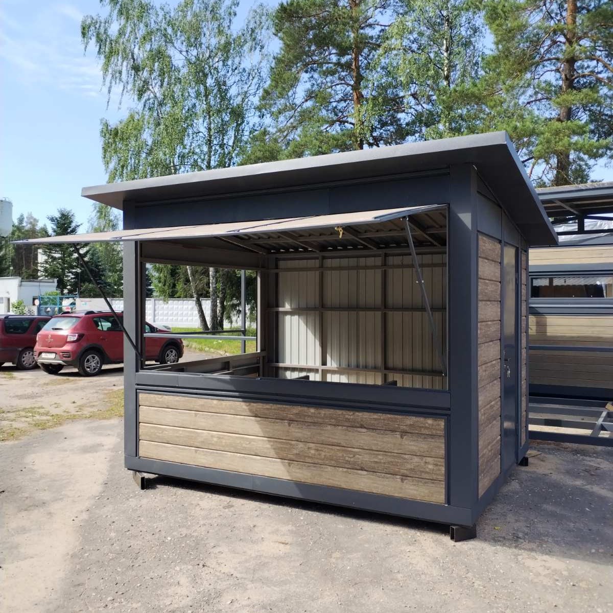 (Габаритная ширина одного модуля может быть от 2-х до 4-х метров и длина до 10м, максимальная высота 3,5м). Выполняются на жестком металлическом каркасе из профильной трубы, обшитой деревянным брусом.