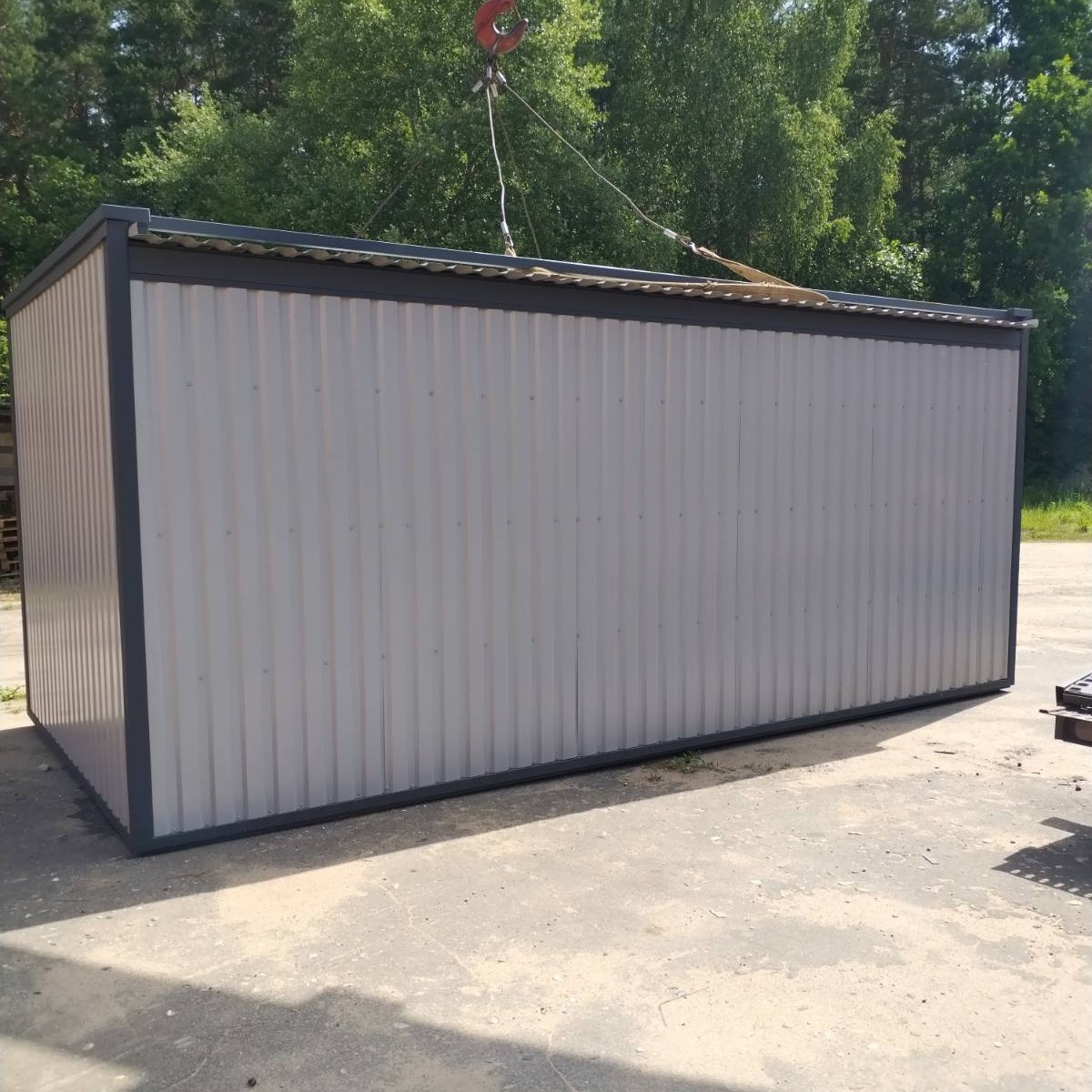 Кровля – профлист. Строение может набираться из нескольких модулей, которые легко и герметично стыкуются между собой.