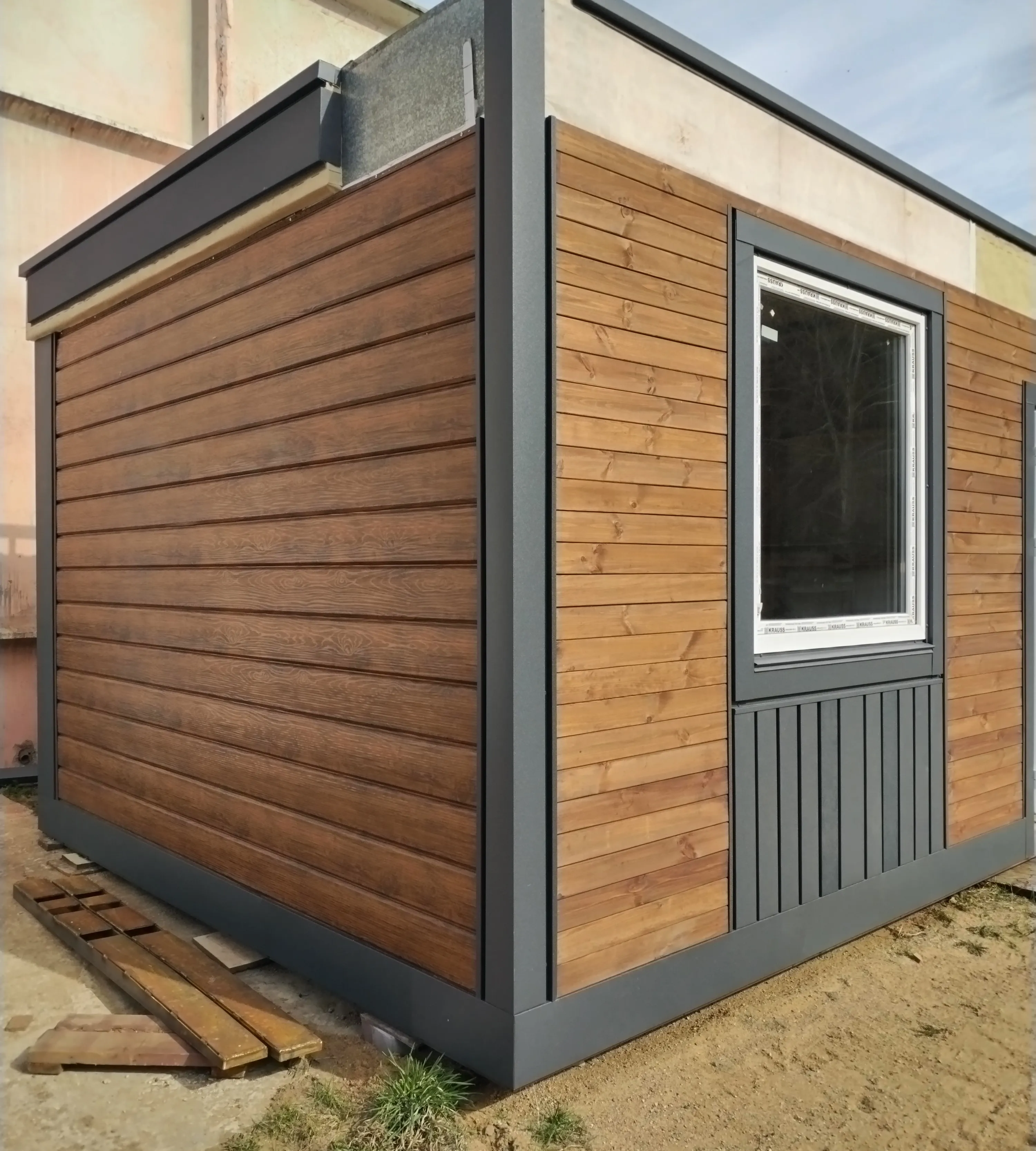 Комбинированная отделка - экобрус, планкен, доборные элементы